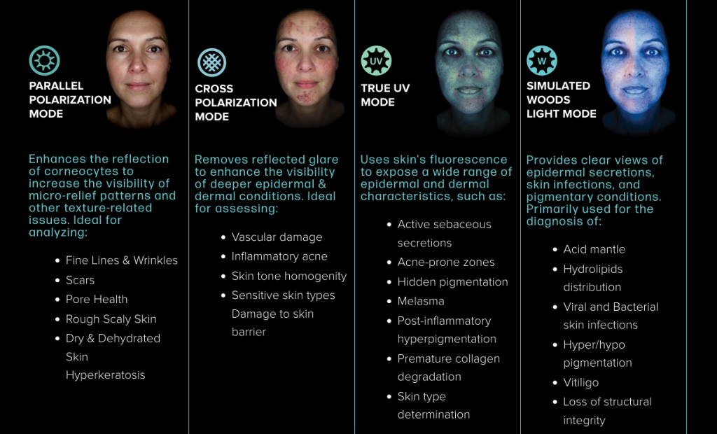 - Complete, Detailed Skin Analysis: Gain in-depth insights into your skin’s health, identifying fine lines, wrinkles, acne, pigmentation, and more.