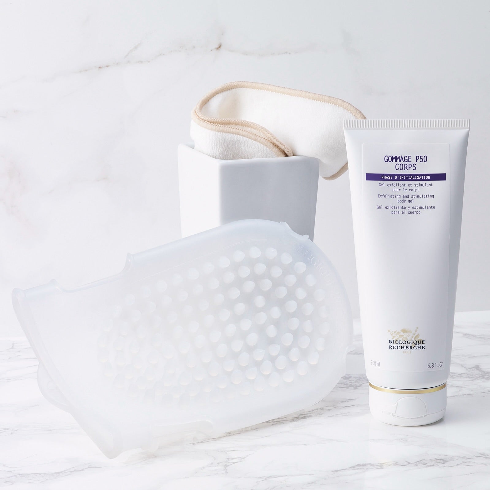 Gommage P50 Corps provides intense exfoliation – both chemical and mechanical – to the thickest skins and the roughest areas to stimulate cell renewal.